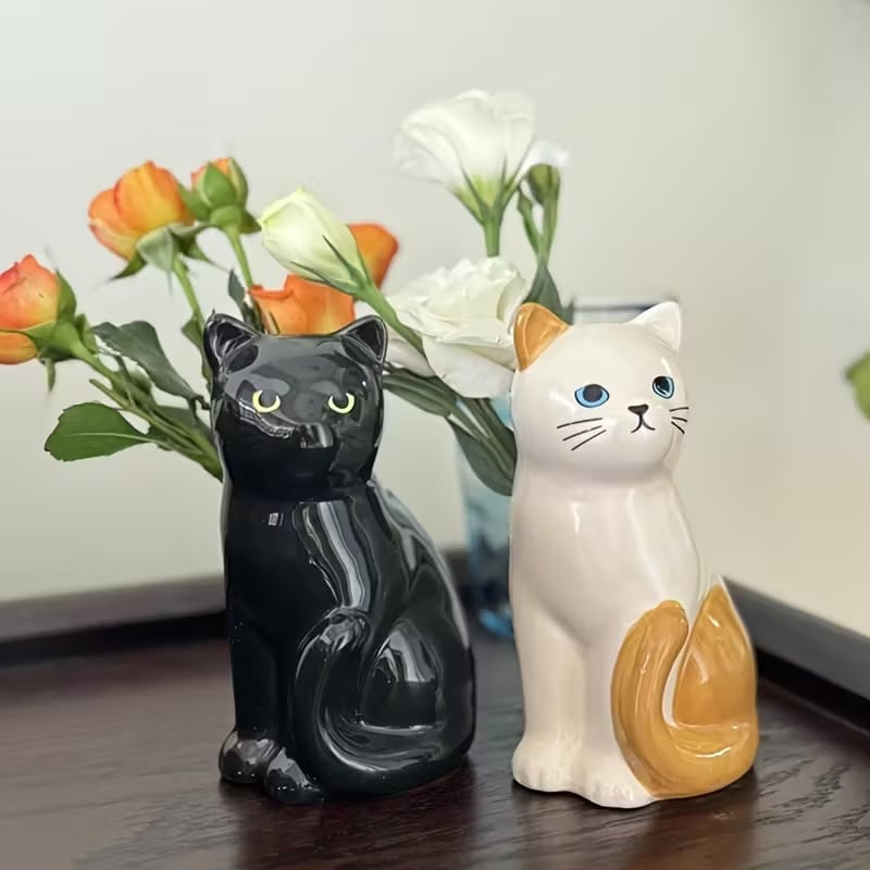 【選べる2タイプ】猫の花瓶 − くろねこノア/しろねこのミルク − 静けさとぬくもりの物語
