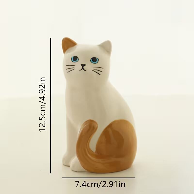 陶器のやさしい質感と、穏やかな表情が印象的な猫の花瓶。