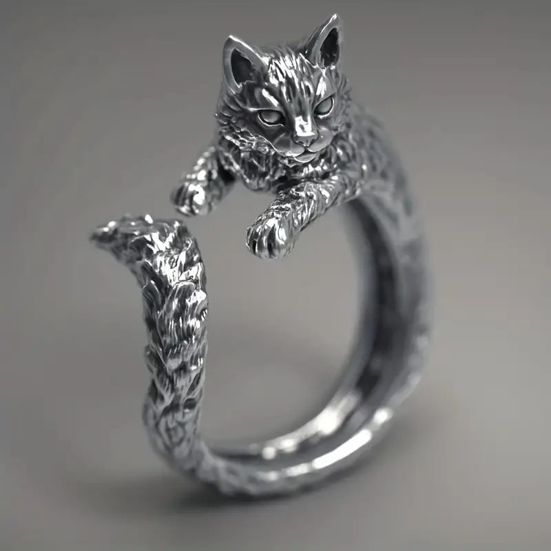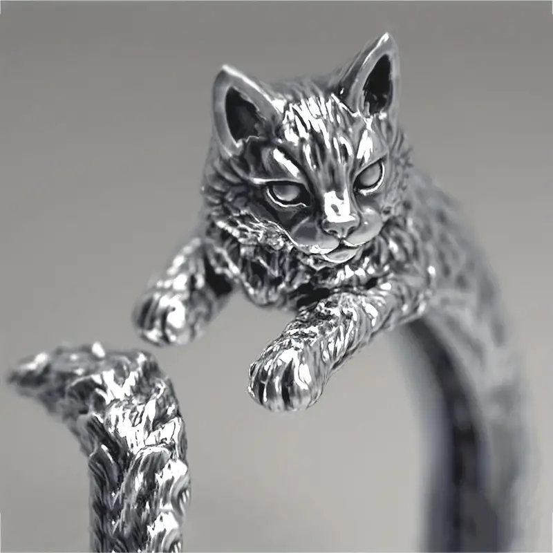 【調整可能】ミステリアスねこリング − くろねこノア しっぽ巻きつきリング −